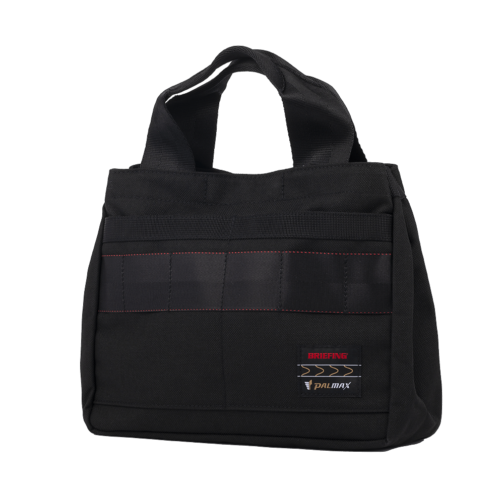 ラウンド中の小物の持ち運びに便利なBRIEFING 定番のトートバッグを PALMAX が別注で作成。 両社のダブルネームを施した オリジナルレーベルを取り付けています。 スコアカードやスマートフォンを入れるのに 便利なポケットをフロント、バックに搭載。 また内部にもポケットやキーホルダーを取り付けてBRIEFING らしい収納力に優れたトートバッグとなりました。 メインファブリックには、耐久性に優れ、撥水加工も施された、 500 デニールの「CORDURA(R)TRUELOCK」を使用。 様々な状況を考慮したタフな仕様になっています。